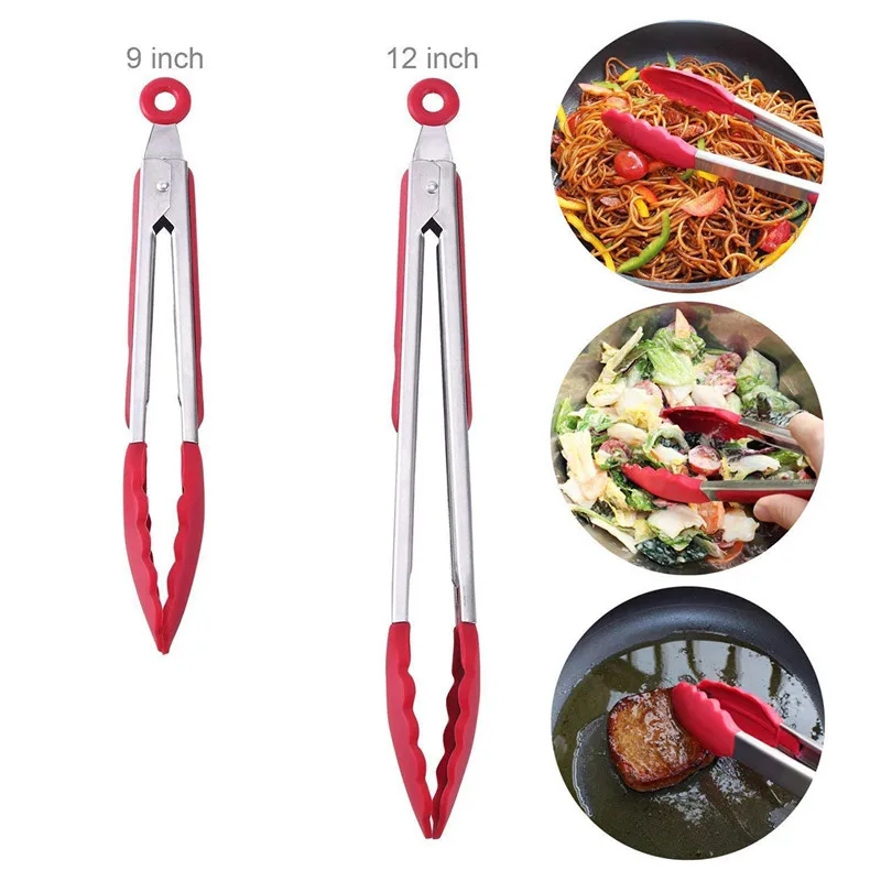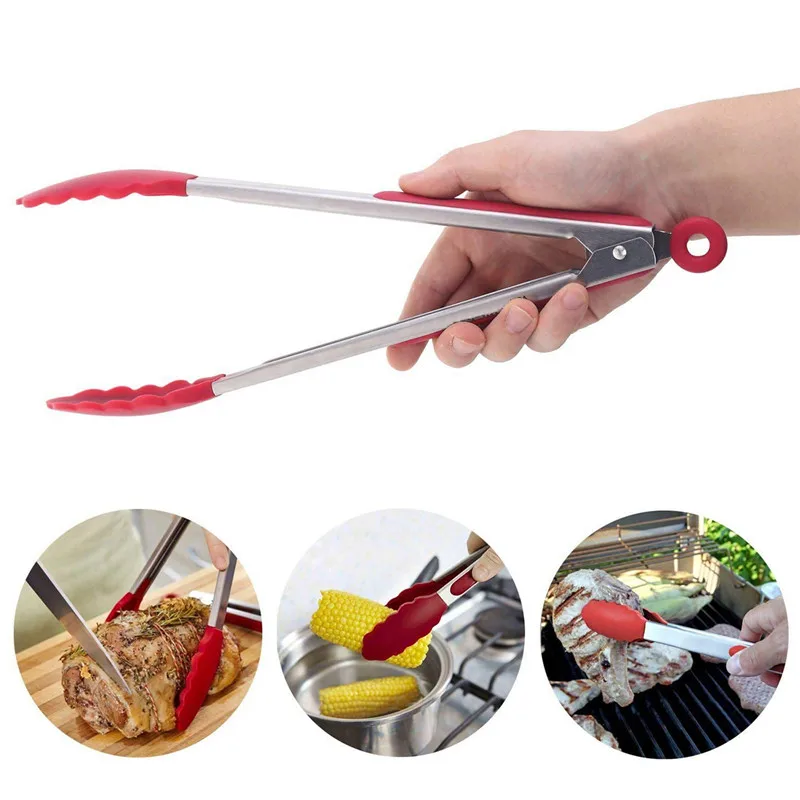 Hot Sale Stainless Steel BBQ Tongs Red Black Meat Food Clip Barbecue Tools Kitchen Accessories Cook