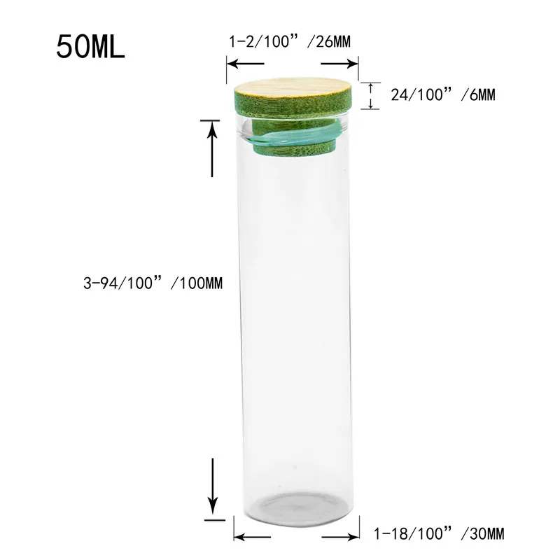 BEST 30x100mm 50ml Glass Bottle with Bamboo Cap High Borosilicate Glass Jars bamboo Glycyrrhiza Sweets F