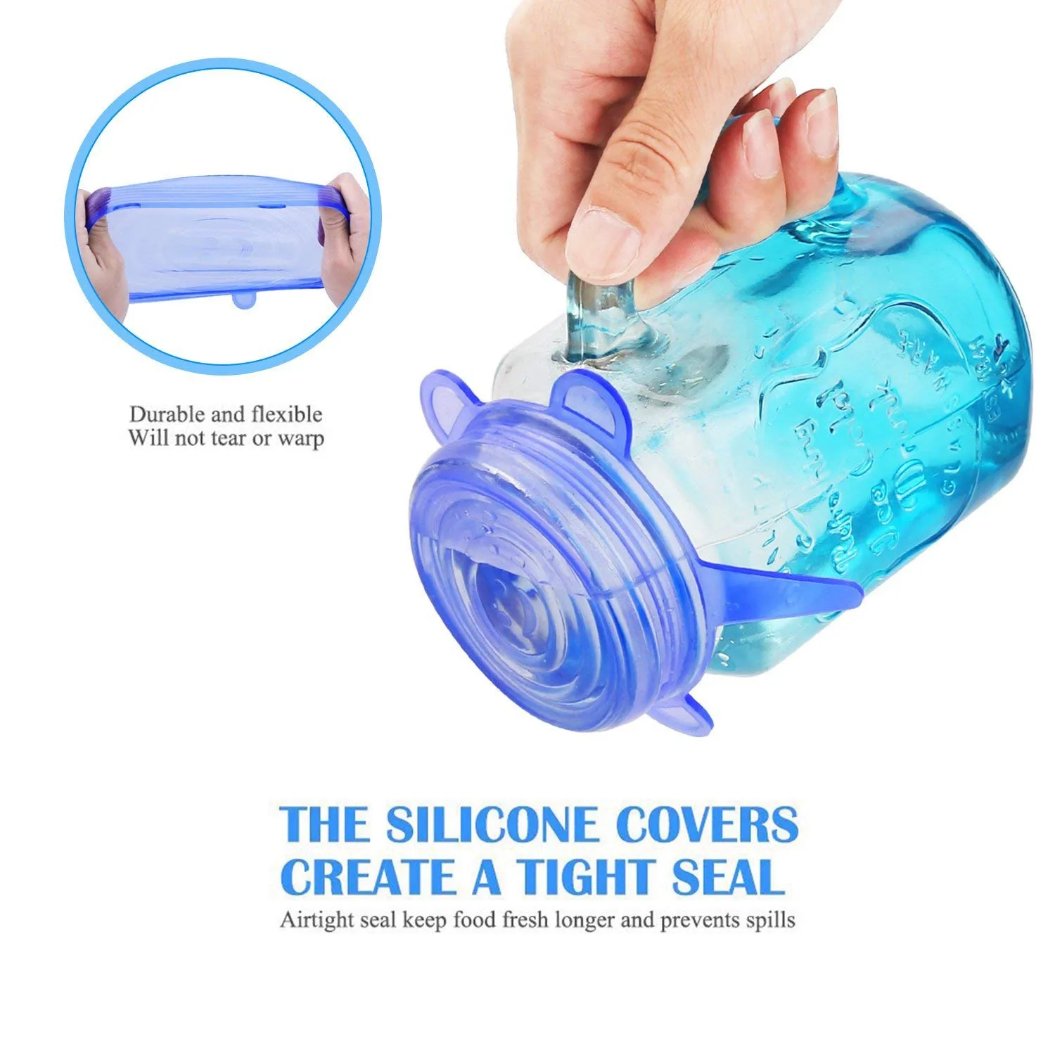 Silicone Stretch Lids 7-Pack Various Sizes Cover for BowlSuperior for Keeping Food Fresh Dishwasher