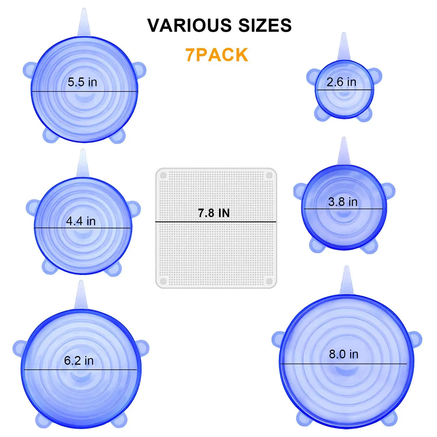 BEST QUALITY Silicone Stretch Lids 7-Pack Various Sizes Cover for BowlSuperior for Keeping Food Fresh Dishwasher