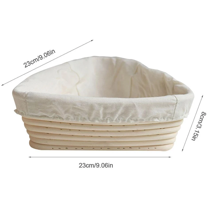 Rattan Oval Triple-Cornered Proofing Bread Basket with Padded Dough Pastry Bowl Baked Food Storage