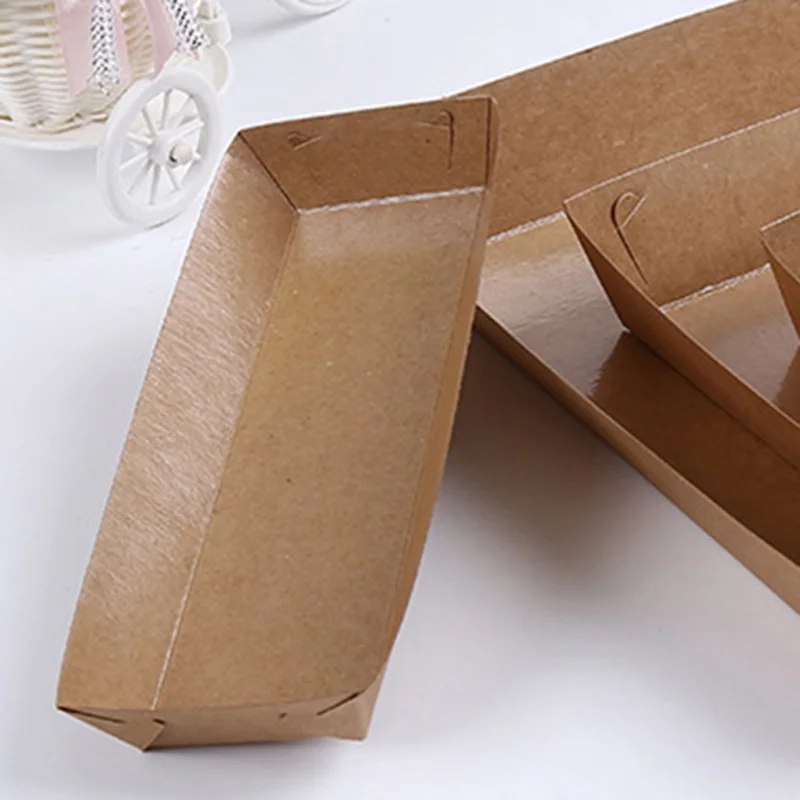 50Pcs Disposable Paper Food Serving Tray Kraft Paper Coating Boat Shape Snack Open Box French Fries