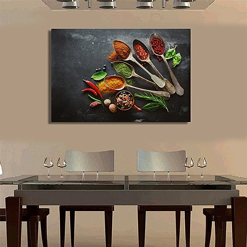 HOT SALE Kitchen Food Pattern Spray Oil Painting Canvas Print Art Poster Picture Painting Home Kitchen Flavo